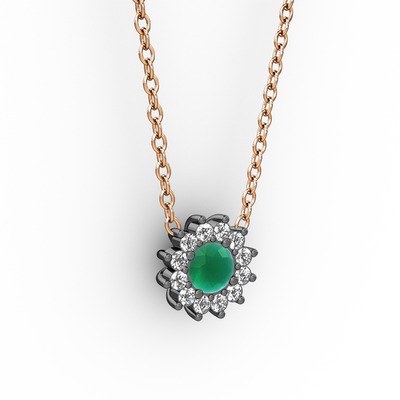 Kök zümrüt ve pırlanta 925 ayar siyah rodyum kaplama gümüş kolye (0.1056 karat, 40 cm gümüş rolo zincir)