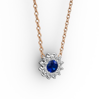 Lab safir ve pırlanta 14 ayar beyaz altın kolye (0.1056 karat, 40 cm rose altın rolo zincir)