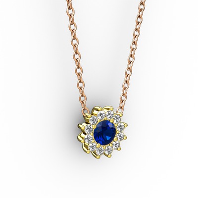 Lab safir ve pırlanta 925 ayar altın kaplama gümüş kolye (0.1056 karat, 40 cm gümüş rolo zincir)