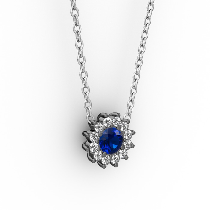 Lab safir ve pırlanta 925 ayar siyah rodyum kaplama gümüş kolye (0.1056 karat, 40 cm beyaz altın rolo zincir)