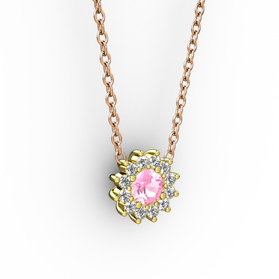 Pembe kuvars ve pırlanta 14 ayar altın kolye (0.1056 karat, 40 cm rose altın rolo zincir)