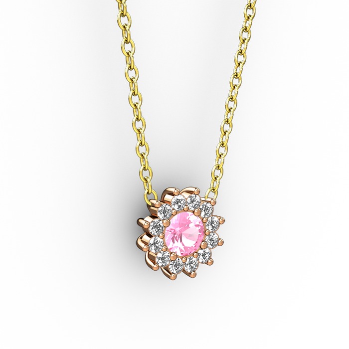 Pembe kuvars ve pırlanta 8 ayar rose altın kolye (0.1056 karat, 40 cm altın rolo zincir)