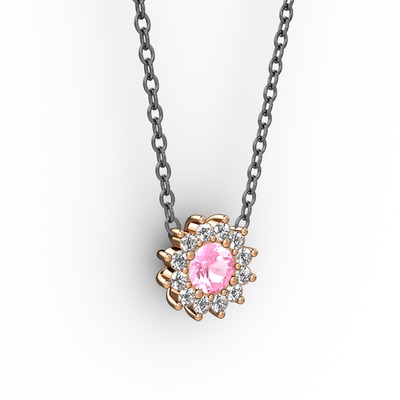 Pembe kuvars ve pırlanta 8 ayar rose altın kolye (0.1056 karat, 40 cm gümüş rolo zincir)