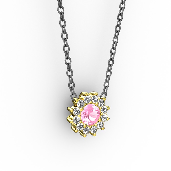 Pembe kuvars ve pırlanta 925 ayar altın kaplama gümüş kolye (0.1056 karat, 40 cm gümüş rolo zincir)
