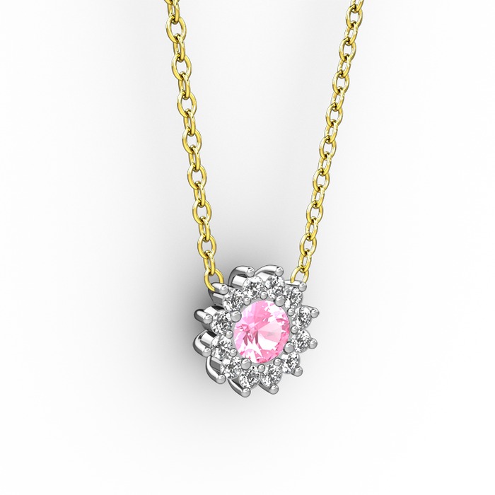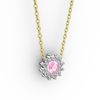 Pembe kuvars ve pırlanta 925 ayar gümüş kolye (0.1056 karat, 40 cm altın rolo zincir)