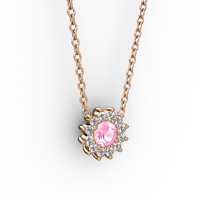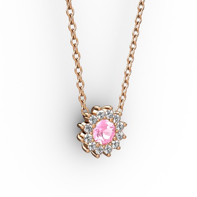 Pembe kuvars ve pırlanta 925 ayar rose altın kaplama gümüş kolye (0.1056 karat, 40 cm gümüş rolo zincir)