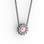Pembe kuvars ve pırlanta 925 ayar siyah rodyum kaplama gümüş kolye (0.1056 karat, 40 cm gümüş rolo zincir)