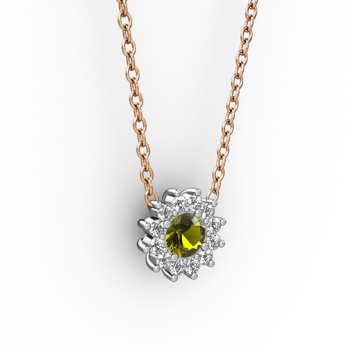 Peridot ve pırlanta 8 ayar beyaz altın kolye (0.1056 karat, 40 cm gümüş rolo zincir)