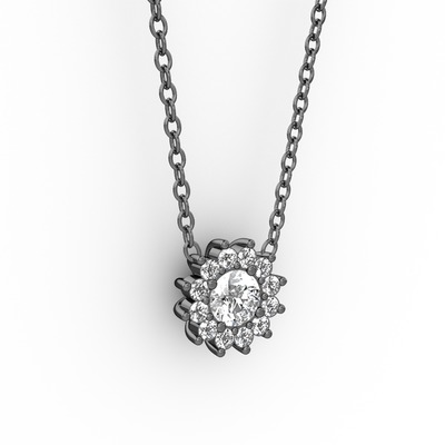Pırlanta 925 ayar siyah rodyum kaplama gümüş kolye (0.2156 karat, 40 cm gümüş rolo zincir)