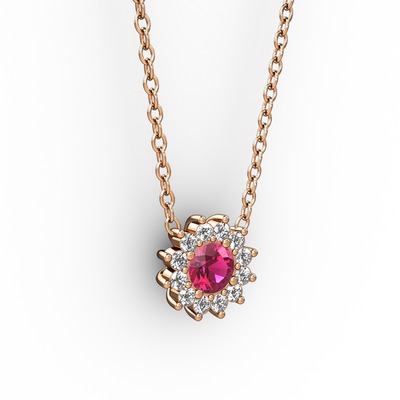 Rodolit garnet ve pırlanta 18 ayar rose altın kolye (0.1056 karat, 40 cm gümüş rolo zincir)