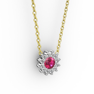 Rodolit garnet ve pırlanta 8 ayar beyaz altın kolye (0.1056 karat, 40 cm altın rolo zincir)