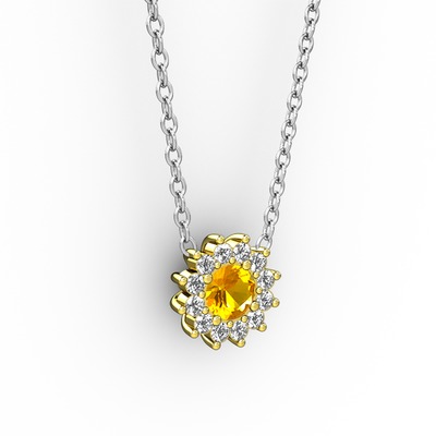 Sitrin ve pırlanta 14 ayar altın kolye (0.1056 karat, 40 cm beyaz altın rolo zincir)