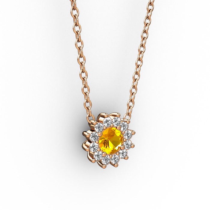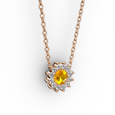 Sitrin ve pırlanta 925 ayar rose altın kaplama gümüş kolye (0.1056 karat, 40 cm gümüş rolo zincir)