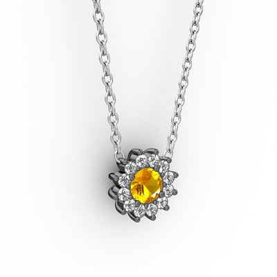 Sitrin ve pırlanta 925 ayar siyah rodyum kaplama gümüş kolye (0.1056 karat, 40 cm beyaz altın rolo zincir)