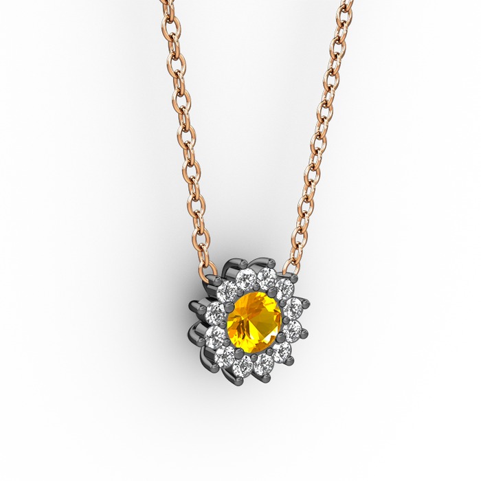 Sitrin ve pırlanta 925 ayar siyah rodyum kaplama gümüş kolye (0.1056 karat, 40 cm rose altın rolo zincir)