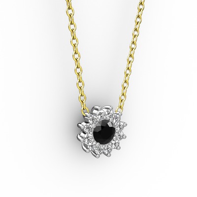 Siyah zirkon ve pırlanta 14 ayar beyaz altın kolye (0.1056 karat, 40 cm altın rolo zincir)