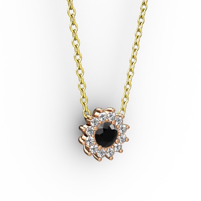 Siyah zirkon ve pırlanta 8 ayar rose altın kolye (0.1056 karat, 40 cm altın rolo zincir)
