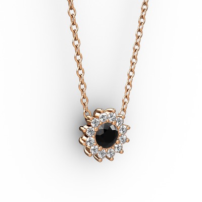 Siyah zirkon ve pırlanta 925 ayar rose altın kaplama gümüş kolye (0.1056 karat, 40 cm gümüş rolo zincir)