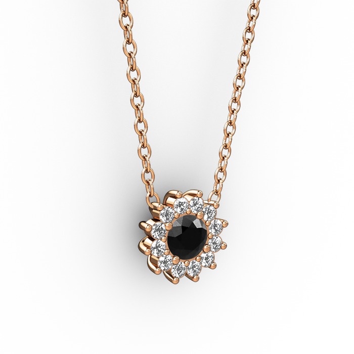 Siyah zirkon ve pırlanta 925 ayar rose altın kaplama gümüş kolye (0.1056 karat, 40 cm rose altın rolo zincir)