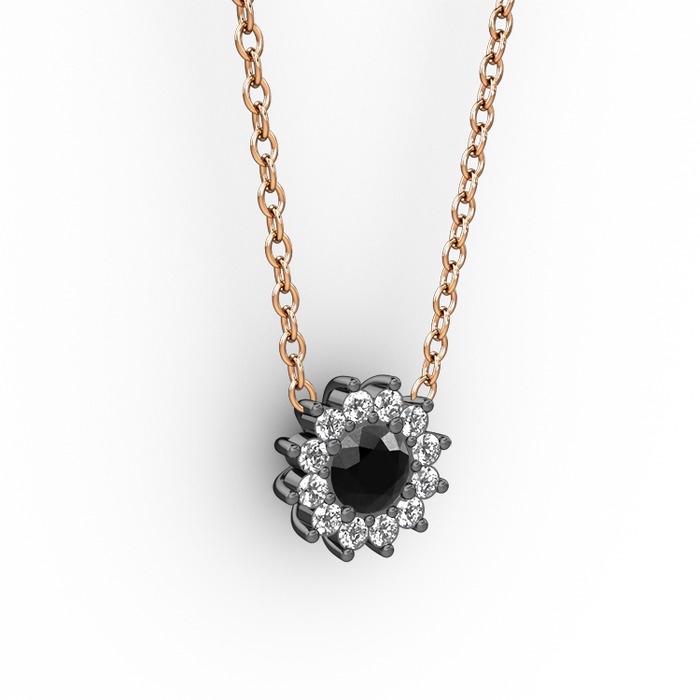 Siyah zirkon ve pırlanta 925 ayar siyah rodyum kaplama gümüş kolye (0.1056 karat, 40 cm rose altın rolo zincir)
