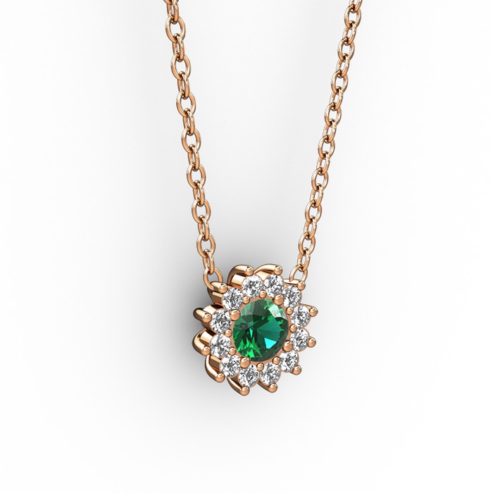 Yeşil kuvars ve pırlanta 14 ayar rose altın kolye (0.1056 karat, 40 cm rose altın rolo zincir)