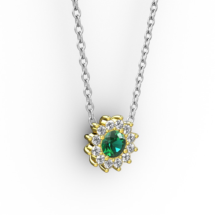 Yeşil kuvars ve pırlanta 8 ayar altın kolye (0.1056 karat, 40 cm gümüş rolo zincir)