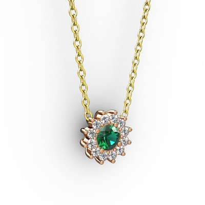 Yeşil kuvars ve pırlanta 8 ayar rose altın kolye (0.1056 karat, 40 cm altın rolo zincir)