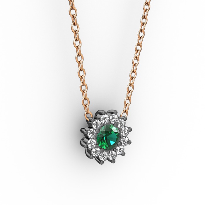 Yeşil kuvars ve pırlanta 925 ayar siyah rodyum kaplama gümüş kolye (0.1056 karat, 40 cm rose altın rolo zincir)