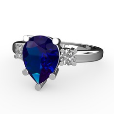 Lab safir ve pırlanta 18 ayar beyaz altın yüzük (0.4224 karat)