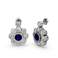 Pırlanta ve lab safir 18 ayar beyaz altın küpe (0.24 karat)