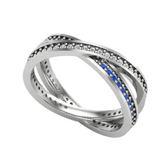 Pırlanta ve lab safir 925 ayar gümüş yüzük (0.92 karat)