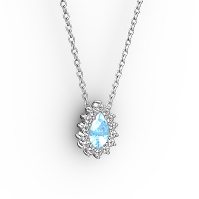 Pırlanta ve akuamarin 14 ayar beyaz altın kolye (0.1232 karat, 40 cm beyaz altın rolo zincir)