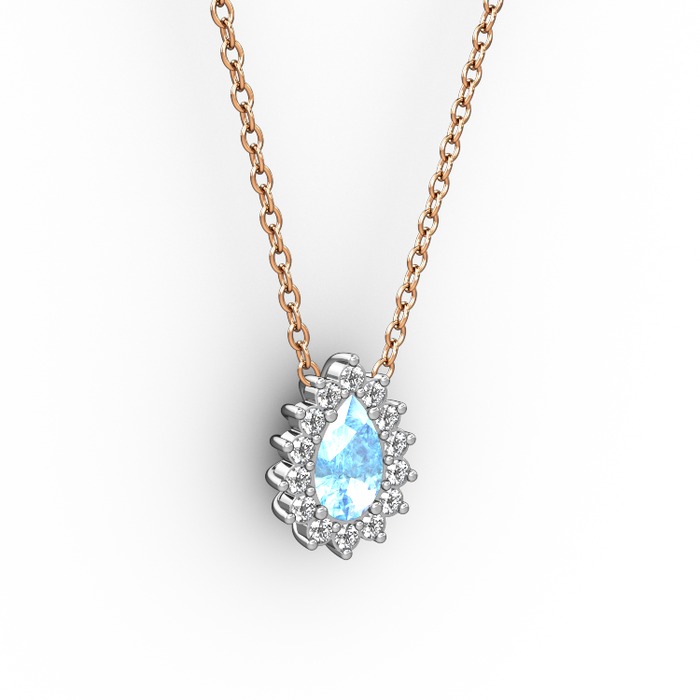 Pırlanta ve akuamarin 18 ayar beyaz altın kolye (0.1232 karat, 40 cm gümüş rolo zincir)