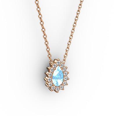 Pırlanta ve akuamarin 18 ayar rose altın kolye (0.1232 karat, 40 cm rose altın rolo zincir)
