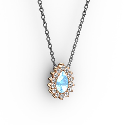 Pırlanta ve akuamarin 925 ayar rose altın kaplama gümüş kolye (0.1232 karat, 40 cm gümüş rolo zincir)