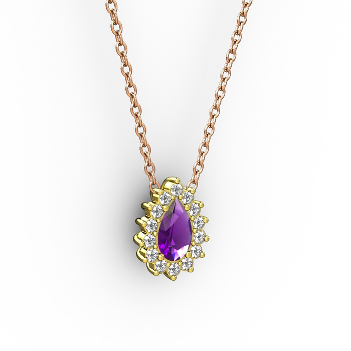 Pırlanta ve ametist 14 ayar altın kolye (0.1232 karat, 40 cm gümüş rolo zincir)