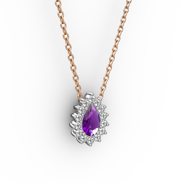 Pırlanta ve ametist 18 ayar beyaz altın kolye (0.1232 karat, 40 cm gümüş rolo zincir)