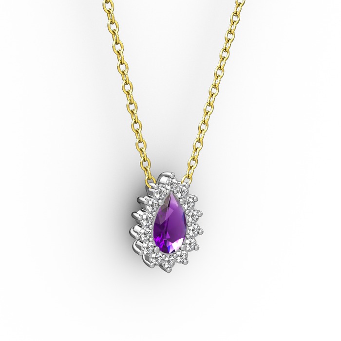 Pırlanta ve ametist 8 ayar beyaz altın kolye (0.1232 karat, 40 cm altın rolo zincir)