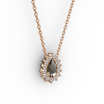 Pırlanta ve dumanlı kuvars 18 ayar rose altın kolye (0.1232 karat, 40 cm rose altın rolo zincir)