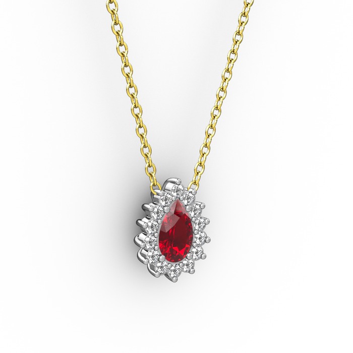 Pırlanta ve garnet 8 ayar beyaz altın kolye (0.1232 karat, 40 cm altın rolo zincir)