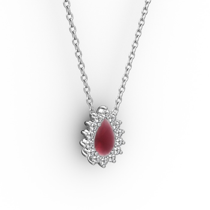 Pırlanta ve kök yakut 14 ayar beyaz altın kolye (0.1232 karat, 40 cm beyaz altın rolo zincir)