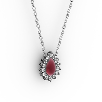 Pırlanta ve kök yakut 925 ayar siyah rodyum kaplama gümüş kolye (0.1232 karat, 40 cm gümüş rolo zincir)