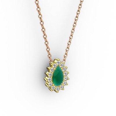 Pırlanta ve kök zümrüt 8 ayar altın kolye (0.1232 karat, 40 cm rose altın rolo zincir)