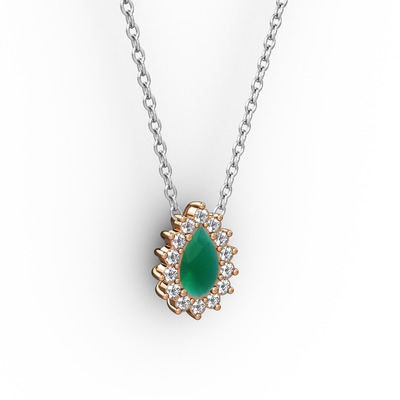 Pırlanta ve kök zümrüt 925 ayar rose altın kaplama gümüş kolye (0.1232 karat, 40 cm beyaz altın rolo zincir)