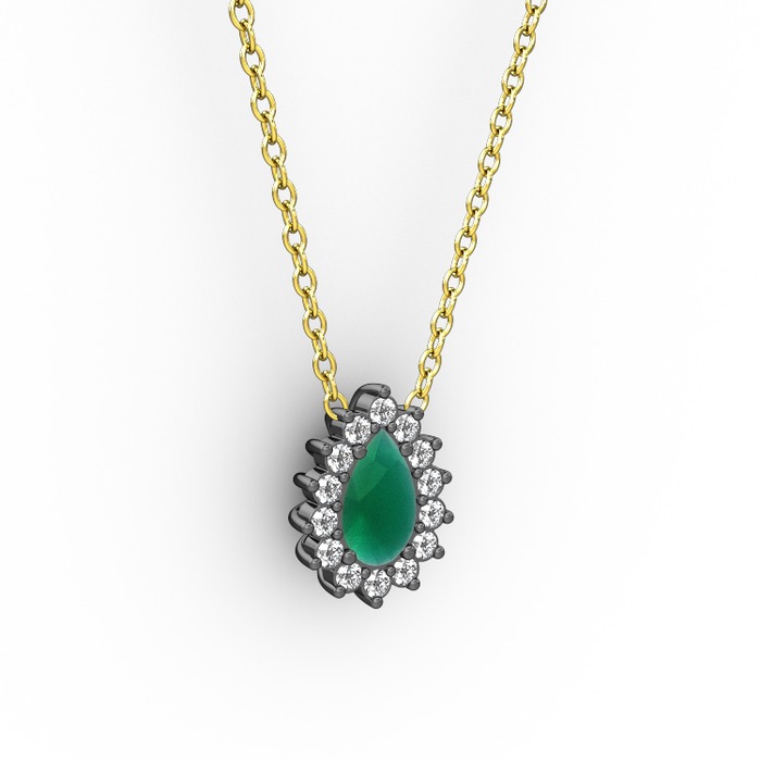 Pırlanta ve kök zümrüt 925 ayar siyah rodyum kaplama gümüş kolye (0.1232 karat, 40 cm altın rolo zincir)