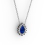 Pırlanta ve lab safir 925 ayar siyah rodyum kaplama gümüş kolye (0.1232 karat, 40 cm beyaz altın rolo zincir)