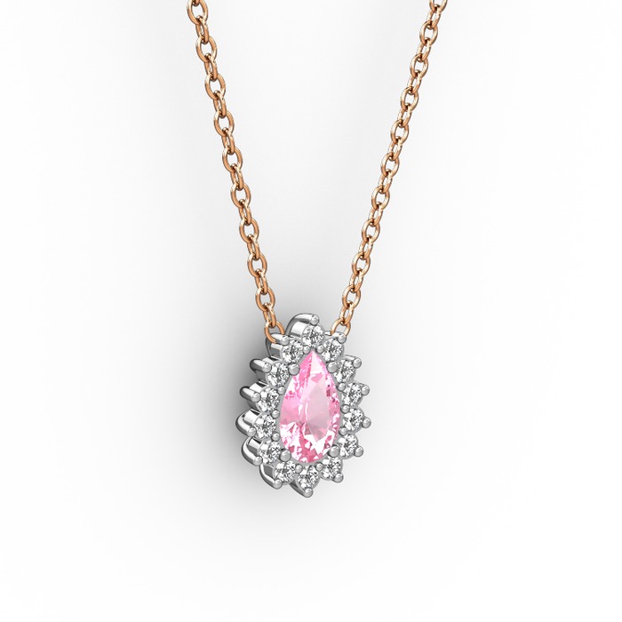 Pırlanta ve pembe kuvars 18 ayar beyaz altın kolye (0.1232 karat, 40 cm gümüş rolo zincir)