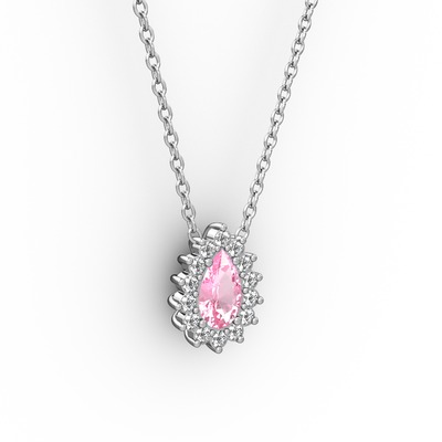 Pırlanta ve pembe kuvars 8 ayar beyaz altın kolye (0.1232 karat, 40 cm beyaz altın rolo zincir)