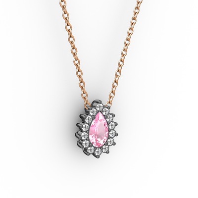 Pırlanta ve pembe kuvars 925 ayar siyah rodyum kaplama gümüş kolye (0.1232 karat, 40 cm gümüş rolo zincir)