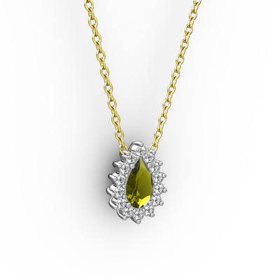 Pırlanta ve peridot 18 ayar beyaz altın kolye (0.1232 karat, 40 cm altın rolo zincir)